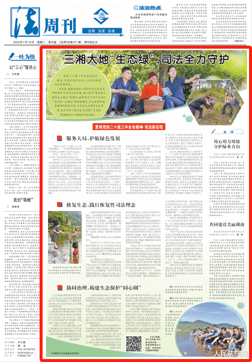 近年来,湖南法院深入贯彻习近平生态文明思想和习近平法治思想,深入践行“绿水青山就是金山银山”的理念,始终牢记习近平总书记“守护好一江碧水”的殷殷嘱托,充分发挥环境资源审判职能作用,以司法之力筑牢生态屏障,全力守护三湘大地“生态绿”,为美丽湖南建设注入强劲的司法动能。