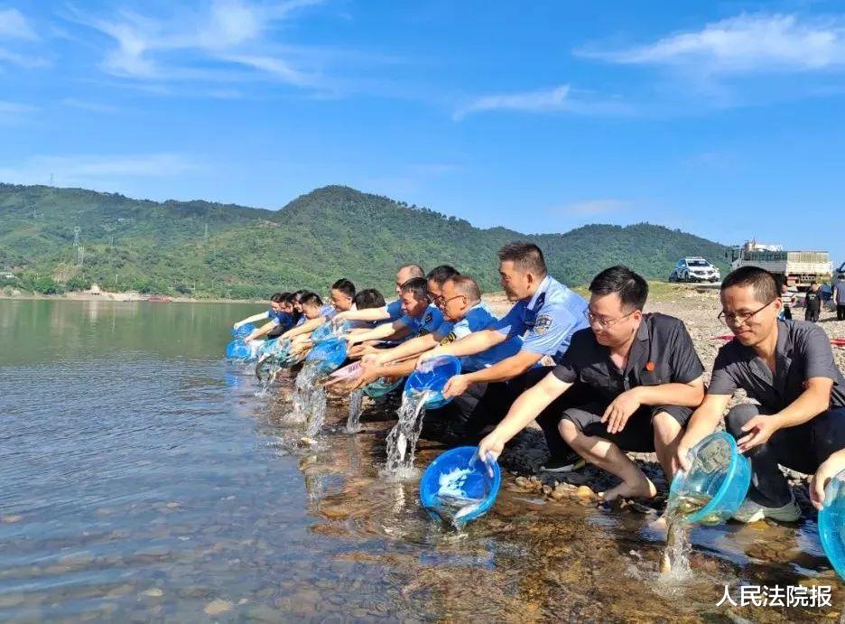 泸溪县人民法院联合县检察院、农业农村局等部门到沅江流域泸溪段开展增殖放流活动。