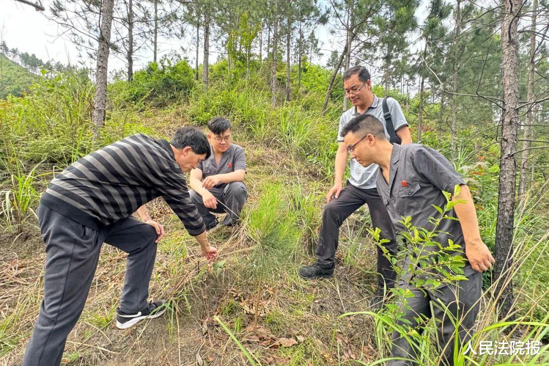 洪江市人民法院托口人民法庭联合公安民警、林业专家到黔城镇小江村,对一起失火案的生态修复情况进行判后监督回访。